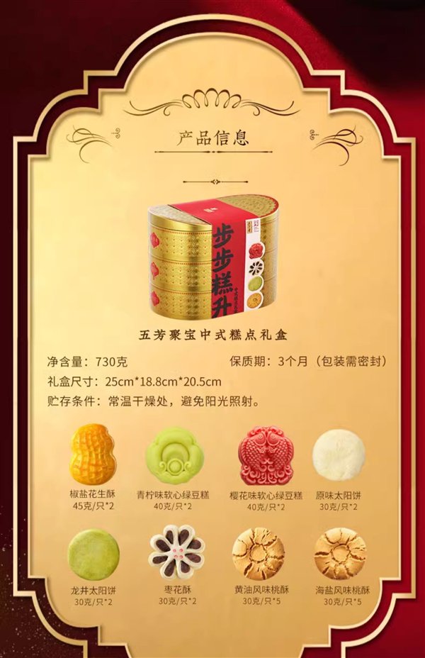 三层铁艺礼盒包装:五芳斋糕点礼盒19.9元1.4斤大促(日常59.9元)